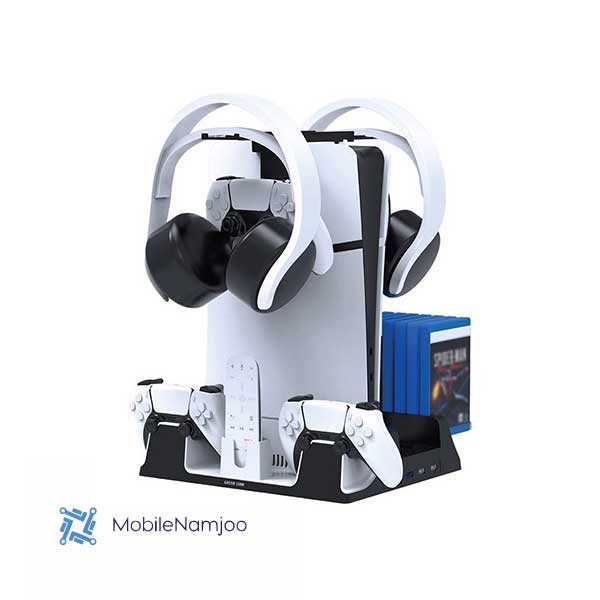 این پایه چندکاره به شما کمک میکند تا فضای بازی خود را منظمتر کرده و تمام تجهیزات PS5 را در یک محل نگهداری کنید.