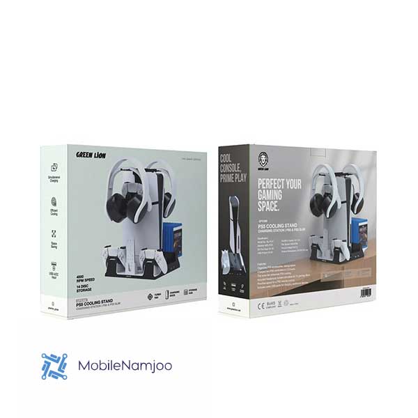 پایه خنککننده و شارژر پلی استیشن ۵ گرین لاین Green Lion PS5 Cooling Stand Charging Station یکی از کاربردیترین لوازم جانبی برای گیمرها است که علاوه بر شارژ همزمان دستهها، دمای کنسول را در بهترین حالت حفظ میکند.
